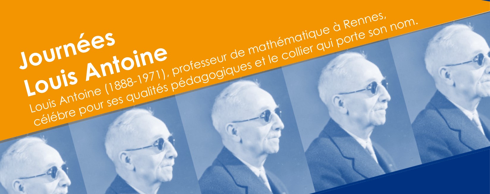The Louis Antoine Days are held twice a year at the Maths building, Université de Rennes 1. They consist in 2 courses of 4 hours each. Registration compulsory. We are sorry some videos are not available. We are looking into it. See previous editions. Journées Louis Antoine - janvier 202629 January 2026 - 30 January 2026 Rennes, Campus Beaulieu Journées Louis Antoine - novembre 202520 November 2025 - 21 November 2025 Rennes, Campus Beaulieu Bâtiment 2A - Amphi E Journées Louis Antoine - Mars 202527 March 2025 - 28 March 2025 Rennes: UFR de Maths / IRMAR Journées Louis Antoine - Janvier 202516 January 2025 - 17 January 2025 Rennes: UFR de Maths / IRMAR Journées Louis Antoine-Mars 202421 March 2024 - 22 March 2024 Rennes : UFR de Maths/ IRMAR/Amphi Lebesgue bat 22-23 Journées Louis Antoine - nov 202309 November 2023 - 10 November 2023 Rennes : UFR de Maths/ IRMAR/Amphi Lebesgue bat 22-23 Journées Louis Antoine - Janv 202326 January 2023 - 27 January 2023 Rennes: UFR de Maths/ IRMAR Journées Louis Antoine - nov 202224 November 2022 - 25 November 2022 Rennes Louis Antoine Days - mars 202210 March 2022 - 11 March 2022 Rennes Journées Louis Antoine - Nov 202125 November 2021 - 26 November 2021 Rennes