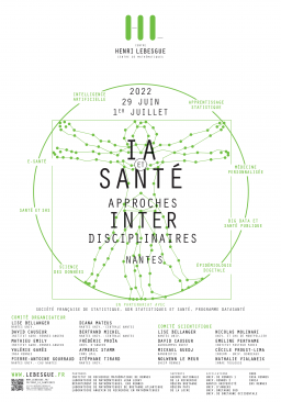 The conference "Artificial Intelligence and health: interdisciplinary approaches" will be held in Nantes at the MSH Ange Guépin from 29 June to 1 July 2022. This scientific meeting is part of the thematic semester 2022 "Machine Learning / Artificial Intelligence" organized by the Henri Lebesgue Mathematics Center in partnership with the Data Santé program and the GdR “Statistics and Health”. It is sponsored by SFdS. It will offer a unique opportunity to exchange knowledge, share ideas and best practices around the theme "AI and Health", favoring interdisciplinary approaches. It brings together researchers and practitioners, from public institutes or the private sector, who contribute or use AI approaches in the health field.