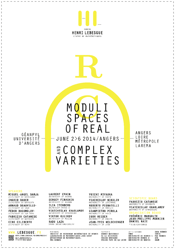 Moduli spaces of real and complex varieties Angers (France), from June 2nd to June 6th, 2014