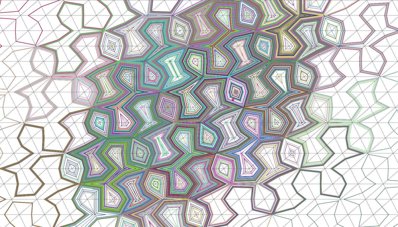 Considérons le modèle suivant du mouvement de la lumière dans un milieu hétérogène. Mathématiquement, c’est un billard dans un pavage du plan. Une bille suit une ligne droite jusqu’au moment où elle arrive au bord d’une tuile puis passe dans la tuile voisine en suivant la loi de réfraction avec un coefficient k=-1. Ce coefficient peut paraître un peu excentrique (et il l’est), mais des matériaux avec ce coefficient de réfraction peuvent être fabriqués et sont intensivement étudiés en physique des méta-matériaux en ce moment.