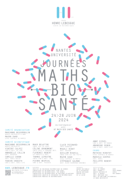 Les Journées Math Bio Santé du RT Math Bio Santé et du GT Mabiome ont lieu en 2024, pour leur troisième édition, à Nantes. Ces journées seront l'occasion pour la communauté de modélisation mathématique en santé et en sciences du vivant d'échanger, tant sur les aspects méthodologiques qu'applicatifs, et d'illustrer la variété et la vitalité des travaux.