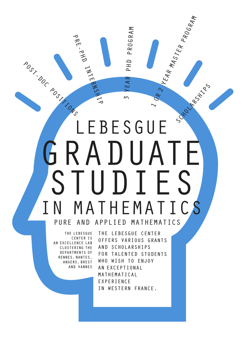 | Le Centre Henri Lebesgue propose des bourses d'un montant de 10 000 € pour des étudiants de mathématiques en première et deuxième année de Master (M1 et M2). Le Centre Henri Lebesgue intervient au niveau des Masters de mathématiques de l'Université de Rennes, de Nantes Université, de l'ENS Rennes, de l'Université de Bretagne Occidentale, de l'Université de Bretagne Sud, Le Mans Université et de l'Université d'Angers. |